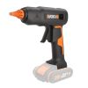 Питание клевого пистолета осуществляется от аккумулятора WORX POWER SHARE 20В. Эти аккумуляторы взаимозаменяемы с любым другим инструментом WORX 20В, а также садовой техникой WORX.