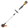 2 в 1 - триммер и кромкорез. Легкое переключение между триммером и кромкорезом. Регулировка мощности и скорости вращения - для более точного контроля при работе. Конструкция с прямым валом и поворотной головой позволяет работать даже в труднодоступных местах. Индикатор уровня зарядки аккумулятора. Зарядное устройство позволяет одновременно заряжать два аккумулятора. Аккумулятор PowerShare® взаимозаменяем с другими инструментами 20V MAX WORX.