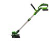 Нижнее расположение двигателя даёт оптимальную развесовку - вес двигателя и головки с одной стороны уравновешиваются весом аккумулятора и ручки с другой. Телескопическая штанга, регулируемая ручка и регулировка угла наклона головки позволяют оптимально настроить инструмент в зависимости от роста оператора. Для работы в режиме подрезки кромок головка устанавливается вертикально, а расположенные на ней колеса предохраняют инструмент от касания земли.